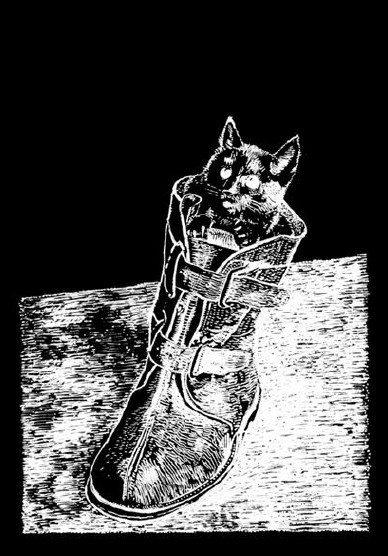 Kissa saappaassa -postikortti.