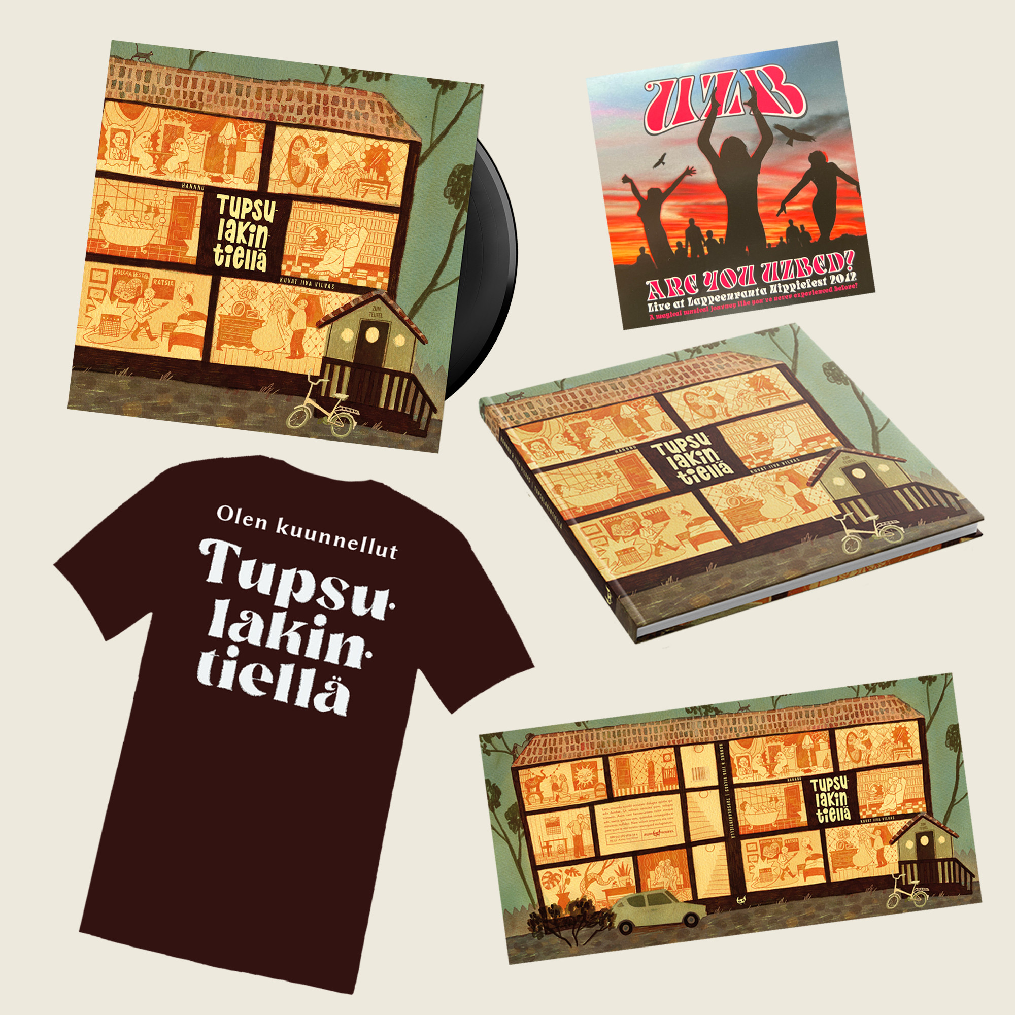 Vastike sisältää Tupsulakintiellä-vinyylilevyn, -kirjan, A2-kokoisen julisteen, t-paidan ja UZB: Are you uzbed? -CD-levyn.